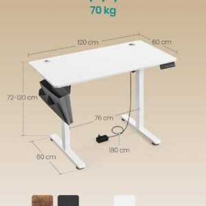 Bureau Électrique SONGMICS LSD132W01 – 120×60 cm Blanc