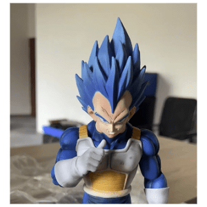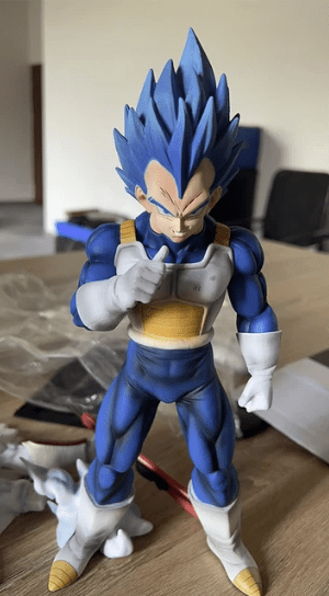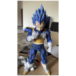 • Détails Impressionnants : Sculptée avec une précision minutieuse, chaque aspect de Vegeta en Super Saiyan Blue est fidèlement reproduit.