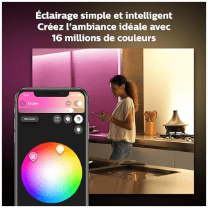 - Contrôle via l’application Hue : Ajustez la couleur et l’intensité lumineuse depuis votre smartphone.